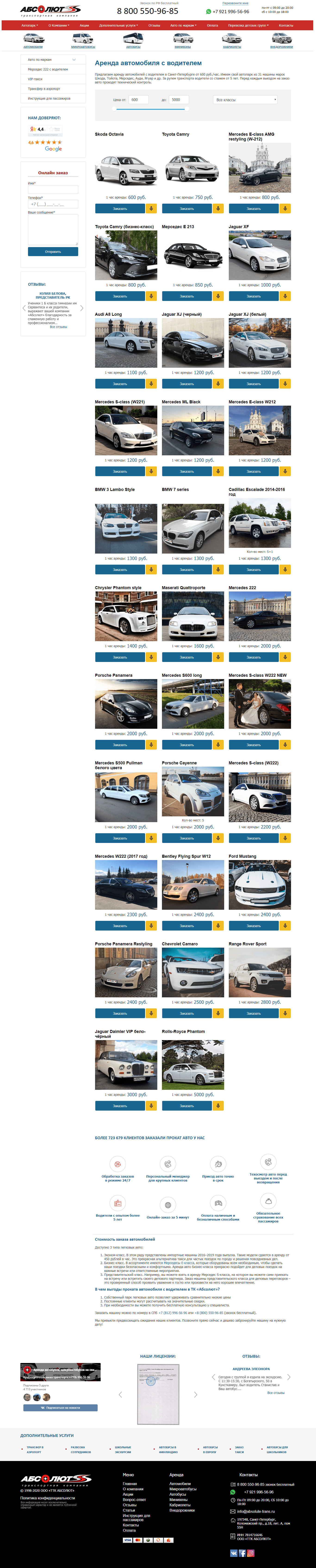 Оптимизация, копирайтинг, управление репутацией и ведение контекстной рекламы для сайта по аренде авто с водителем в Санкт-Петербурге.