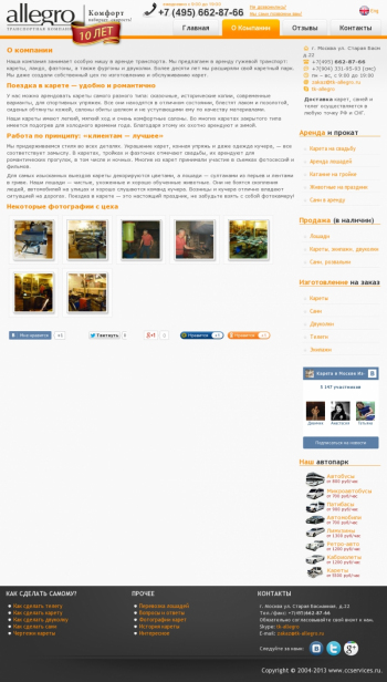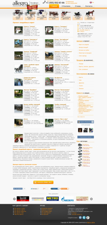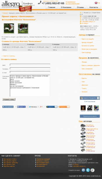Создание и раскрутка сайта для компании, которая занимается арендой гужевого транспорта (кареты, ландо, фаэтоны и т.п.)
