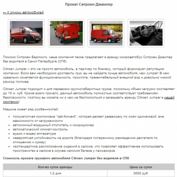 Написание текстов для сайта компании, которая специализируется на аренде транспортных средств в Санкт-Петербурге.