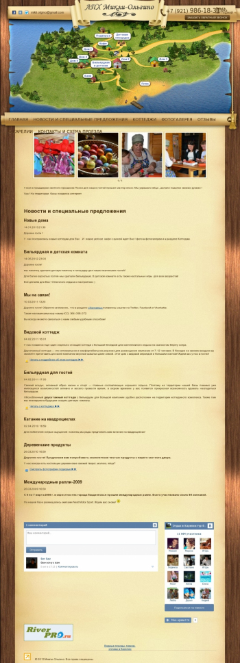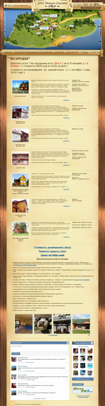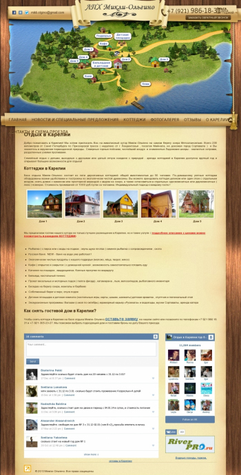 Создание и раскрутка сайта для базы отдыха Микли-Ольгино, который состоит из пяти двухэтажных коттеджей в Карелии.