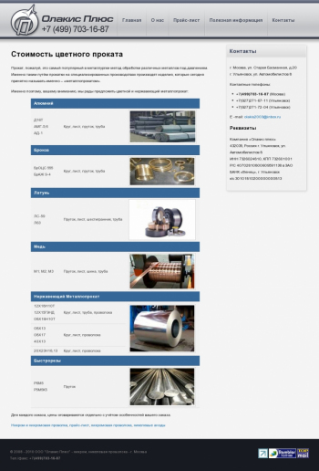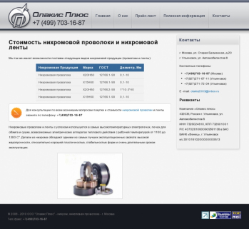 Создание сайта для компании-поставщика нихромовой проволоки и никелевых анодов на рынке цветного металлопроката.