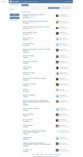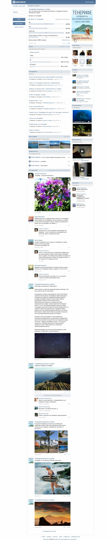 Создание и продвижение группы Вконтакте для информационного портала, который генерирует всю необходимую информацию об острове Тенерифе