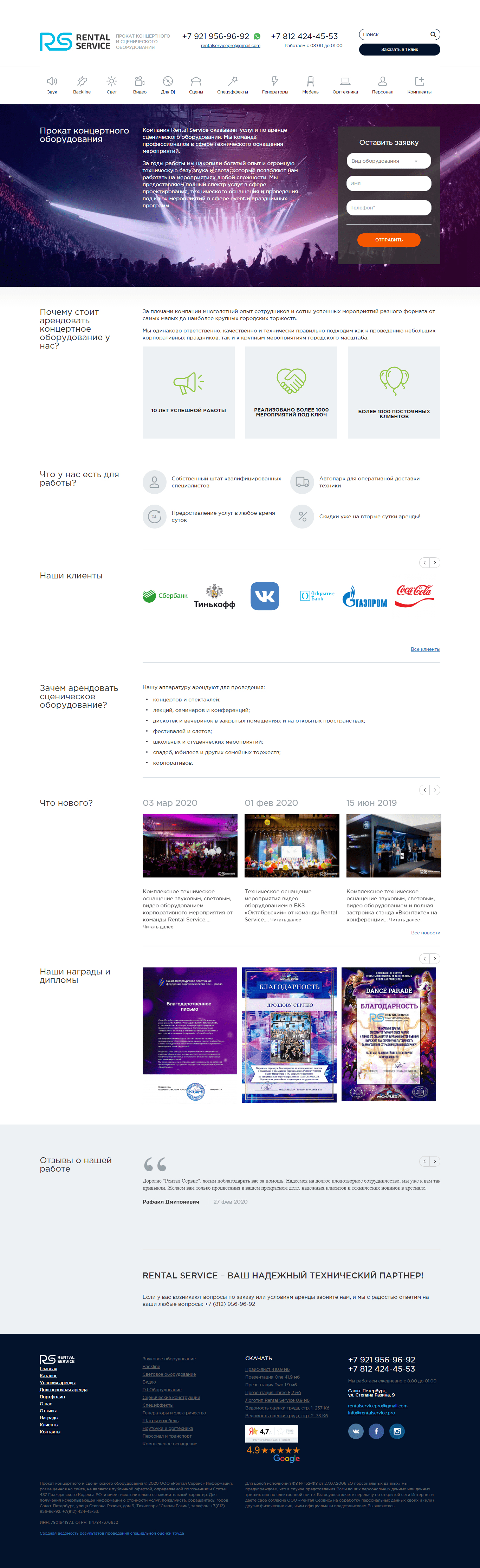 Оптимизация, копирайтинг и управление репутацией для сайта по аренде сценического оборудования в Санкт-Петербурге.