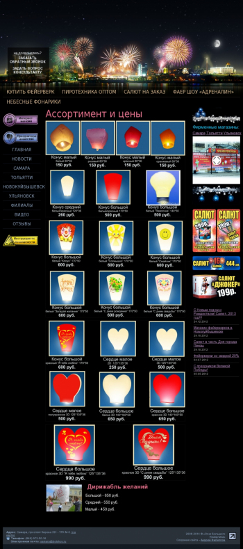 Создание сайта для компании, занимающейся реализацией пиротехнических изделий. Оптимизация и раскрутка по высокочастотным запросам.