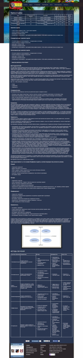 Создание русскоязычной версии сайта для школы, которая занимается обучением испанского языка и расположена в Испании.