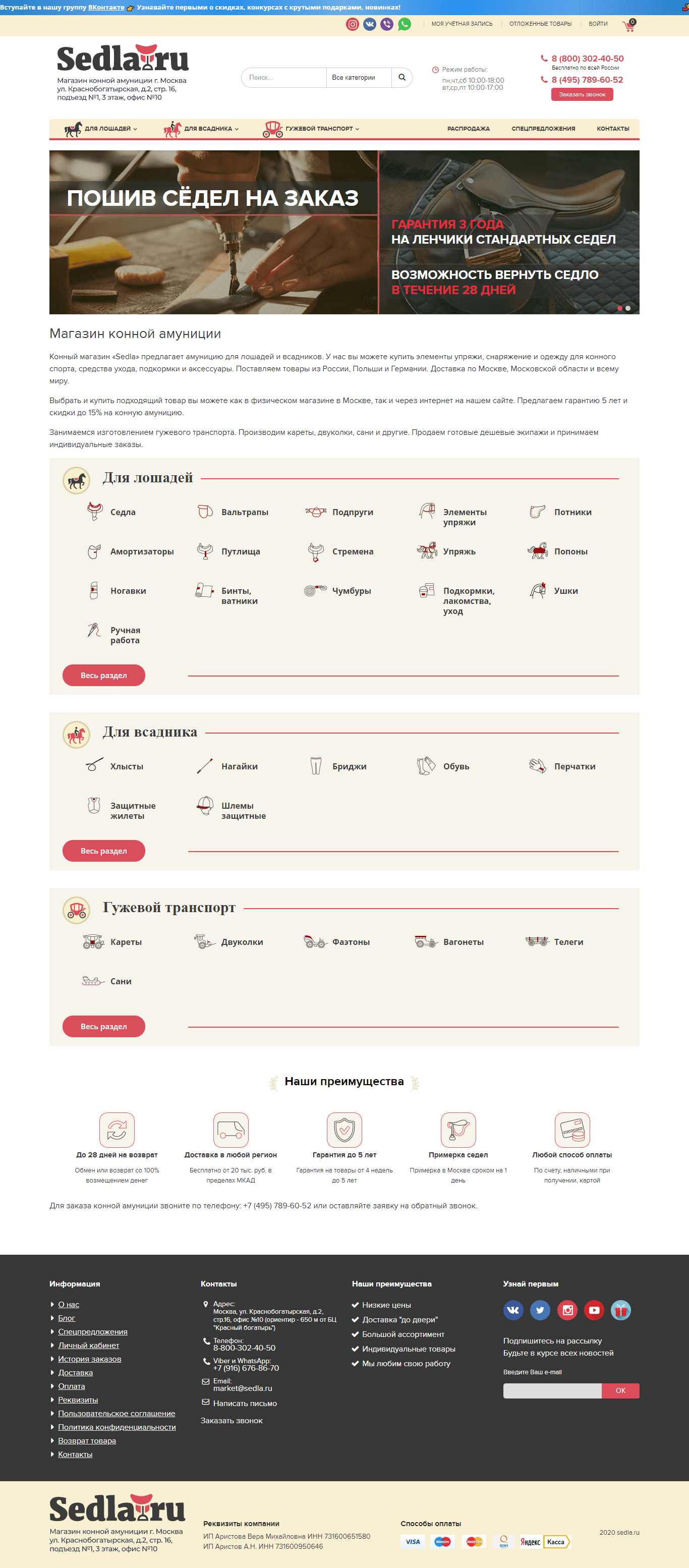 Создание дизайна, оптимизация, копирайтинг, управление репутацией, ведение контекстной рекламы и соц. сетей для сайта по продаже конной амуниции в Москве.