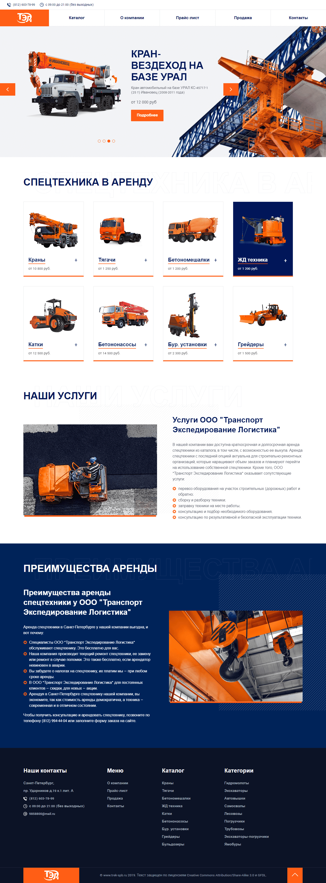 Создание дизайна, разработка сайта по аренде спецтехники в Санкт-Петербурге.