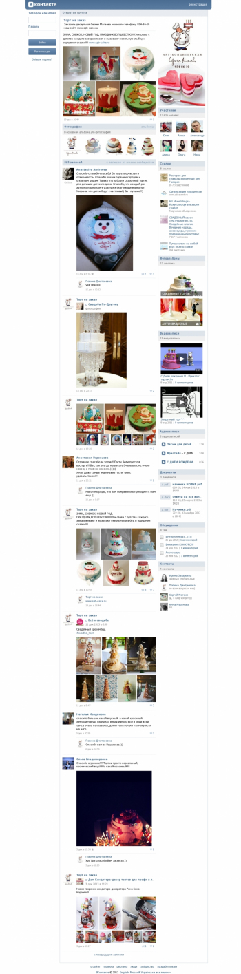 Создание и продвижение группы Вконтакте для компании, которая занимается изготовлением кондитерских изделий на заказ.