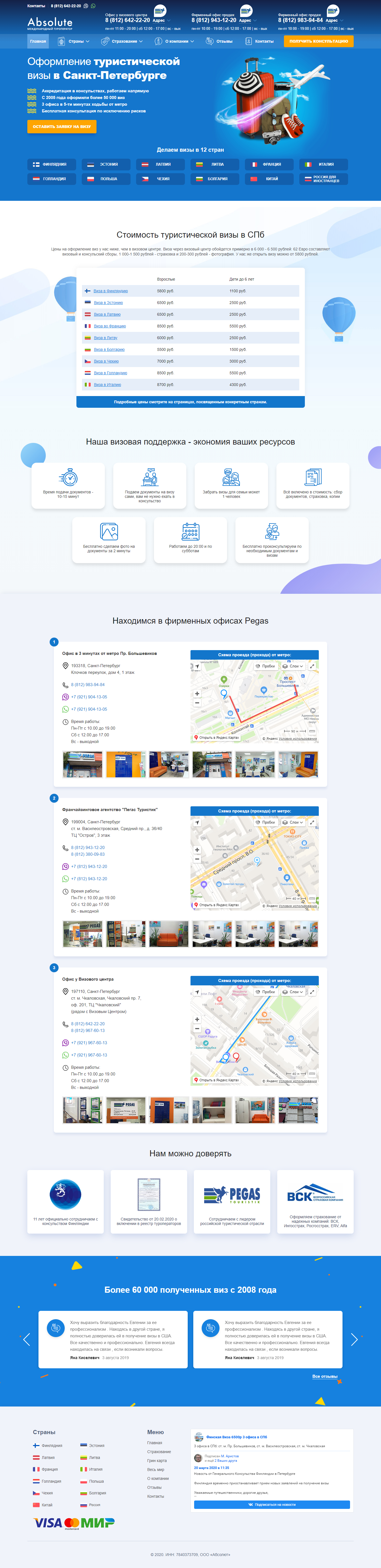 Редизайн, seo-оптимизация и копирайтинг для сайта по оформлению виз в Санкт-Петербурге.