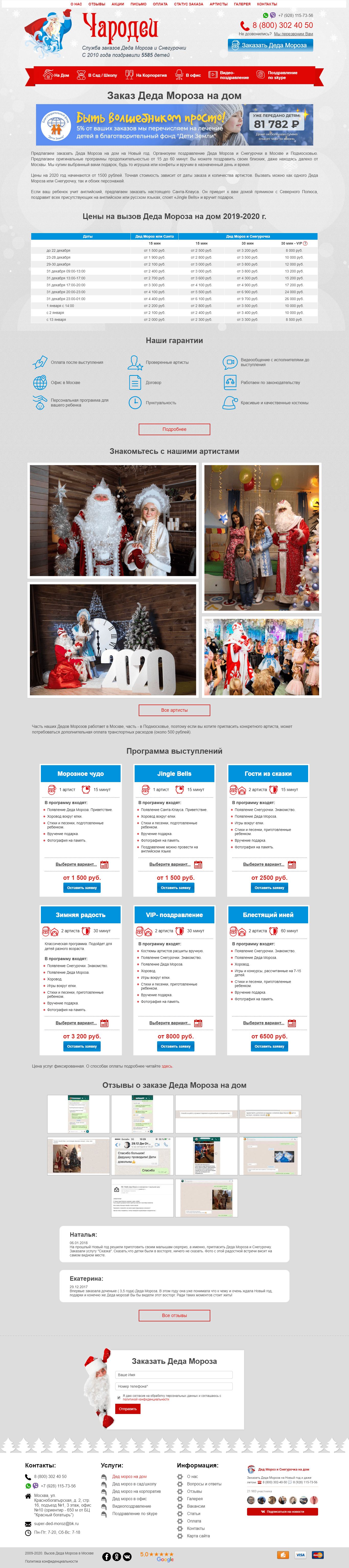 Создание дизайна, оптимизация, копирайтинг, управление репутацией, ведение контекстной рекламы и соц. сетей для сайта по заказу Деда Мороза и Снегурочки в Москве.